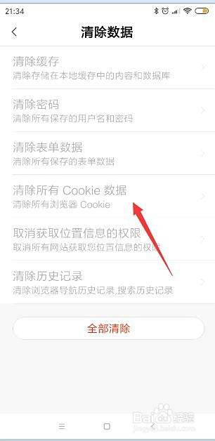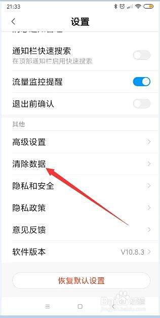 在设置的主界面,找到【清除数据】的选项,点击打开,如图所示。