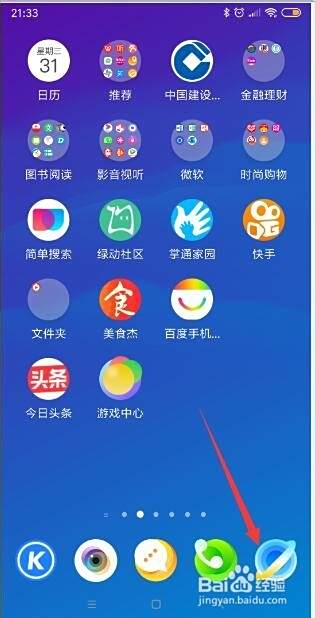 在小米手机桌面上,找到小米浏览器图标,点击打开,如图所示。