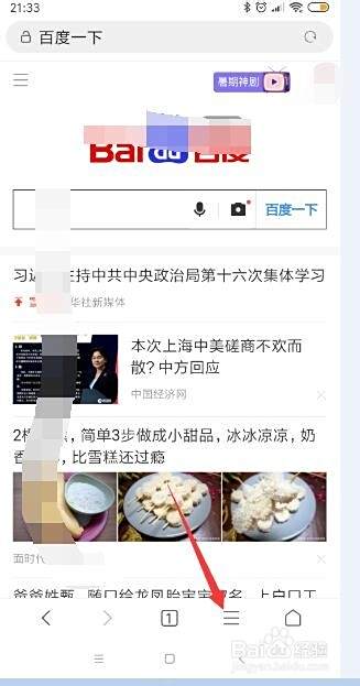 进入小米浏览器的主界面之后,点击下方的三条横线图标,如图所示。