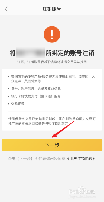 阅读账号注销注意事项,点击“下一步”完成注销即可。