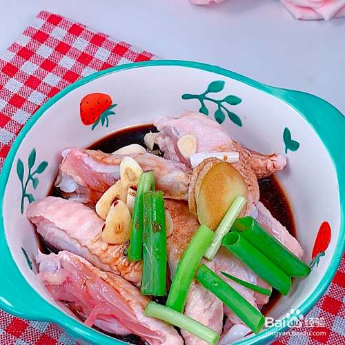 然后在鸡翅中加上葱姜蒜、淀粉、宝宝酱油和盐,抓匀腌制15分钟。