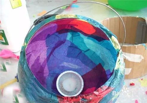 气球花灯制作完成了,等夜晚时可以点燃蜡烛试试效果。