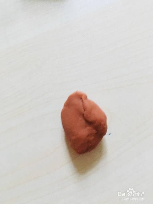 取咖啡色的橡皮泥,搓成长条。