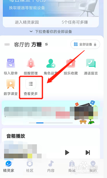 在天猫精灵的精灵家页面点击打开更多。