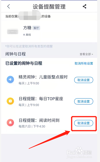 在设备提醒管理页面点击取消订阅设置,即可取消天猫精灵自动播放。