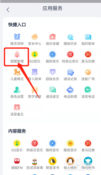 在应用服务页面点击打开提醒管理。