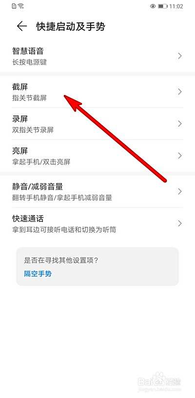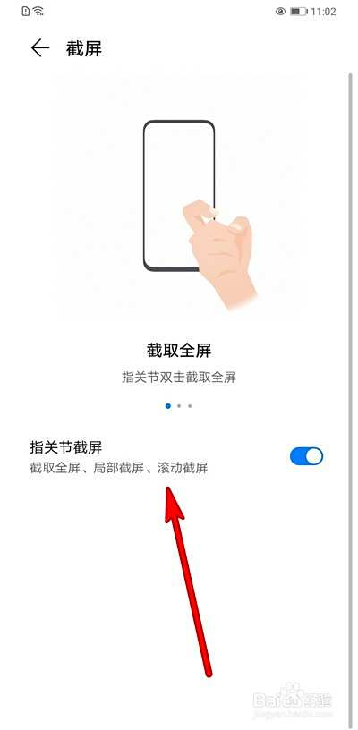 设置使用指关节截屏。