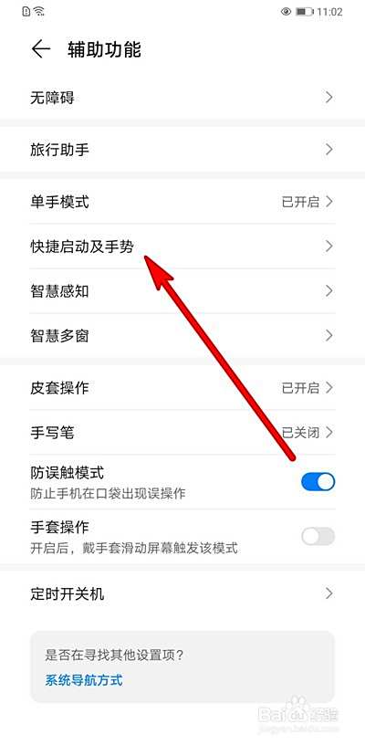 在辅助功能里面打开快捷启动及手势。