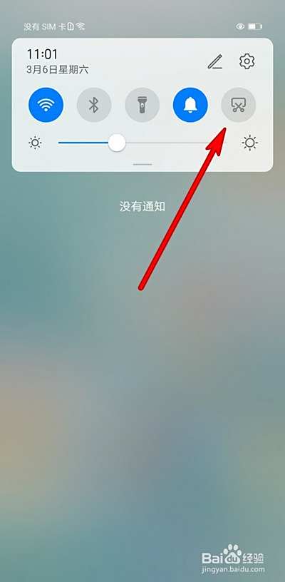 在手机快捷界面可以点击截屏快捷键。