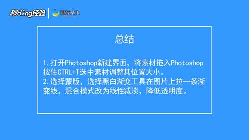 选择蒙版,选择黑白渐变工具,在图片上拉一条渐变线,混合模式改为线性减淡,降低透明度。