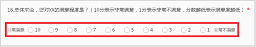 量表类型提供六个类型:满意度、认同度、重要度、愿意度、符合度和自定义设置类型。量表范围为2-100内。