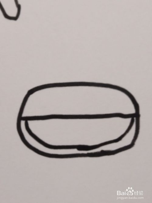 先在画纸上用记号笔画一个椭圆形,当作坦克的机身