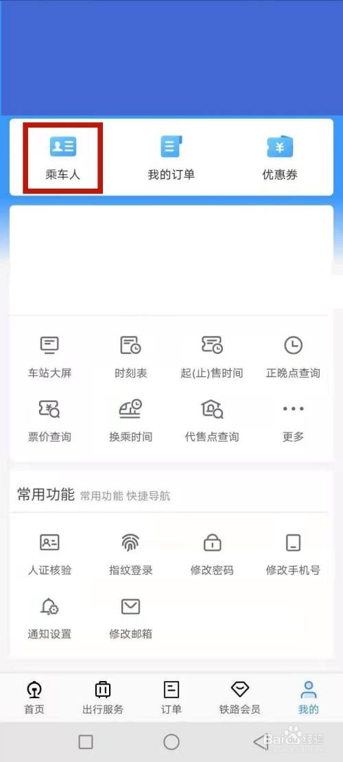 手机打开铁路12306app,完成注册登录,如图红色文本框: