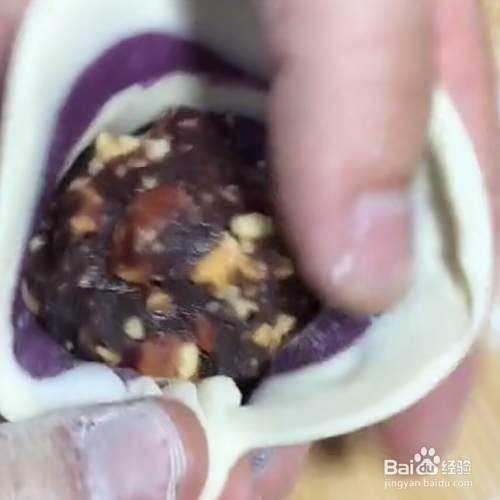 包上自己喜欢吃的豆沙馅料。