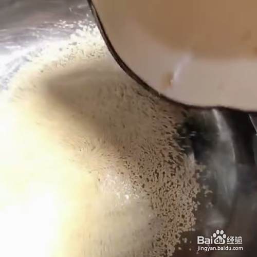 再准备温水半斤,放入酵母5克、白糖20克,泡打粉5克,色拉油15克、搅拌均匀。