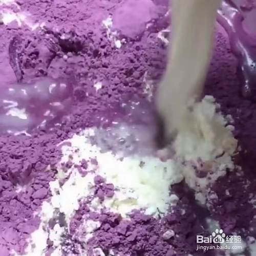 准备一个干净的盆,放面粉500克,紫薯粉100克、搅拌均匀。