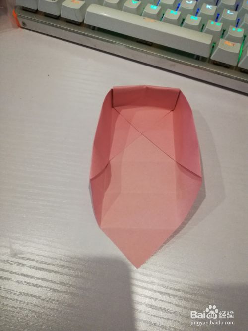 将相对的角也作同样的折叠,这样一个盒子的盖子就做好了,再制作一个美丽的蝴蝶结饰品就更好看了,将礼品盒盖上盖子就完成了。