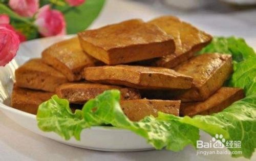 将五香豆腐干切成丝。冬菇浸软,去蒂,洗净,切成丝。