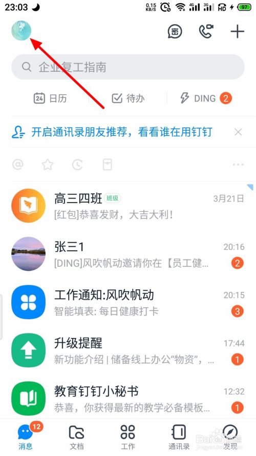 在手机桌面打开 钉钉,登录进入后,点击 头像;