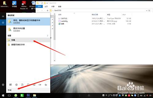 如果是多个字体的安装,那就按win键,在弹出搜索栏输入字体,然后点击字体安装目录,如图:
