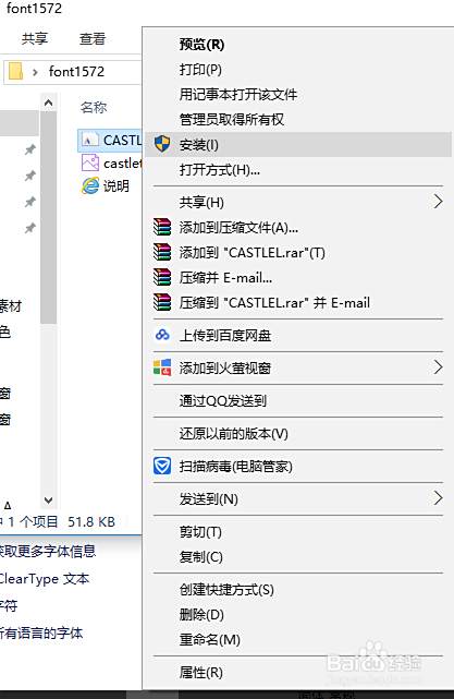 如果是单个字体的安装,那就直接点击右键,安装就可以