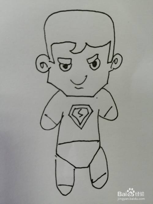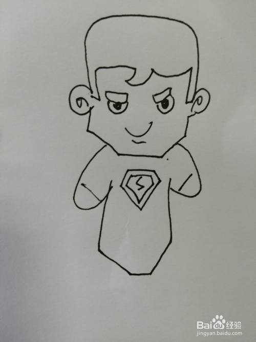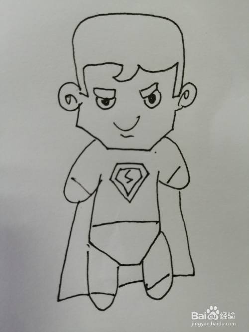 第六步,然后把简笔画超人的身上的盾牌标志画出来。
