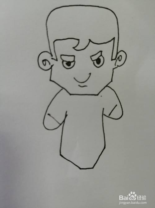 第五步,然后继续画出简笔画超人的强壮的身体部分。