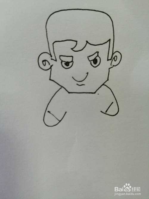 第四步,接着继续画出简笔画超人的微笑的小嘴巴。