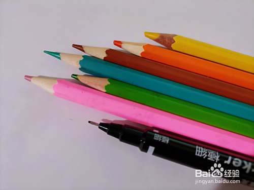 首先准备好要用到的材料,一张白纸、一支勾线笔和一些彩色笔(颜色随意)。