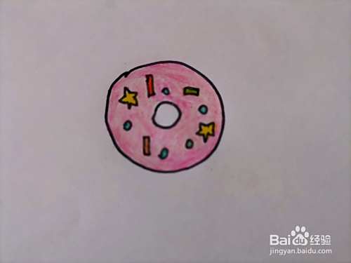 最后我们为甜甜圈涂上颜色(颜色可按个人喜好随意搭配),就这样甜甜圈 画好了。