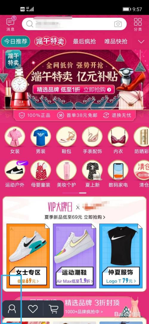 打开唯品会,如下图,看到头像