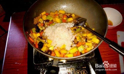 煮的时候水不能放太多,比平时煮饭的水稍微少加一点。这样煮出来的米饭才会粒粒分明好吃。