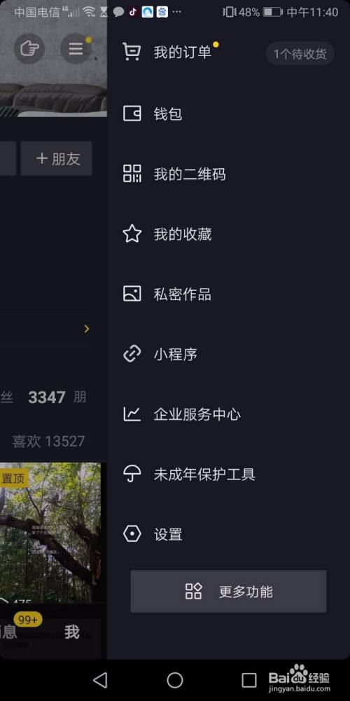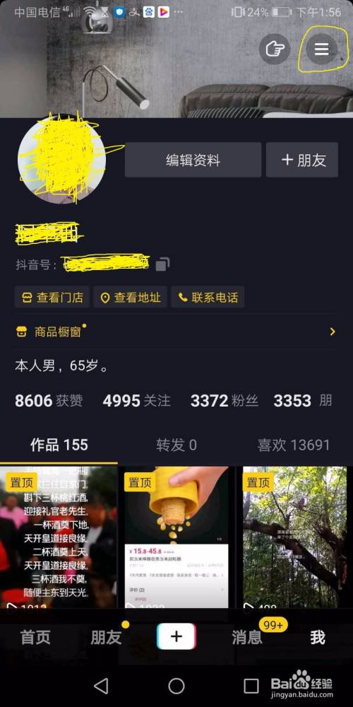 一、点击我的抖音右上角三条横杆。