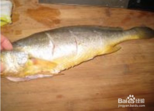 黄鱼处理干净擦干水分在背部斜切三道,翻面一样操作