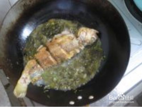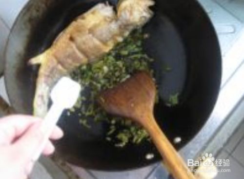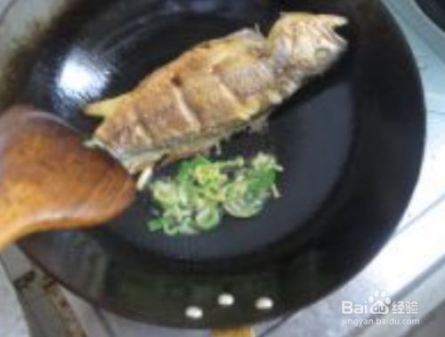 把鱼推至锅边,爆香葱姜,辣椒段