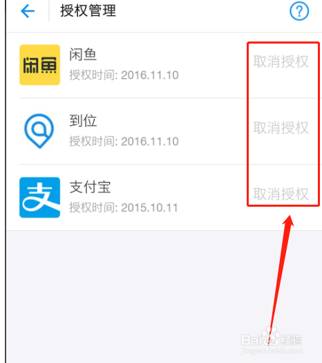 进入授权管理界面后,我们在授权管理界面可以看到授权的APP,只需要点击APP后面的取消授权按钮即可。