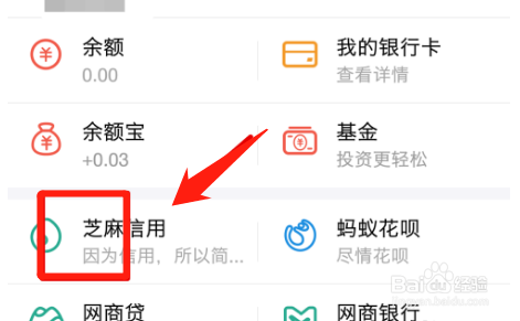 进入支付宝界面后,我们在界面中找到芝麻信用,然后点击芝麻信用,进入芝麻信用主界面。