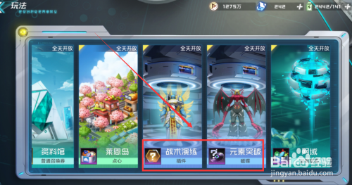 打开页面后,选择元素突破或者战术演练