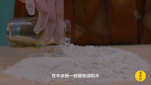 面粉、盐、泡打粉和小苏打,倒入植物油和水混合均匀。
