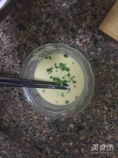 2面粉加少许清水搅拌成糊,鸡蛋打散加到面粉糊中,然后再加少许盐,撒少许葱花,搅拌均匀制成鸡蛋面粉糊备用