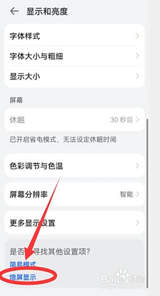 然后在【显示和亮度】菜单中选择【熄屏显示】并打开。