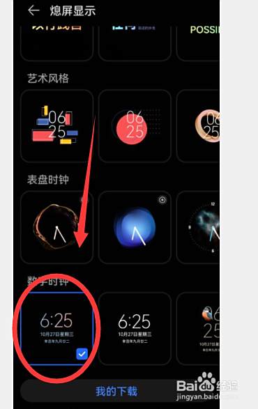 进入【熄屏显示】界面后,选择需要显示的熄屏格式,并勾选完成。