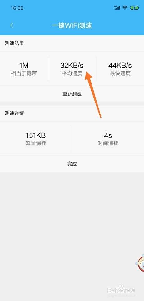 测速完毕,会出一个测速结果,查看网络速度,如下图。