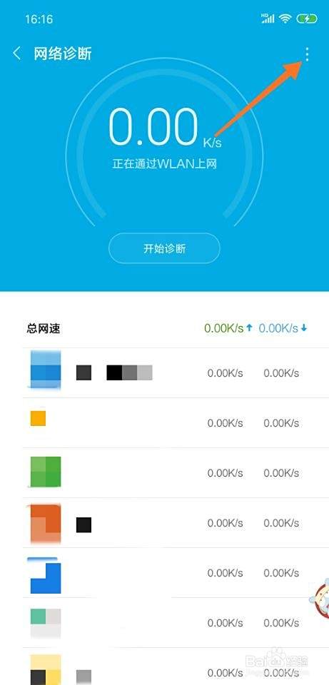 进入网络诊断界面后,点击右上角‘注袭...’图标,如下图。