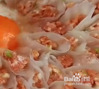 用白菜帮包上肉馅,摆入盘中,中间打入鸡蛋,上锅蒸熟,把蒸菜的汤倒入锅中,放生抽、蚝油,水淀粉勾芡,淋在菜上即可