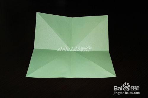 对边谷折,对角线山折,打开后形成米字形折痕,如下图所示。