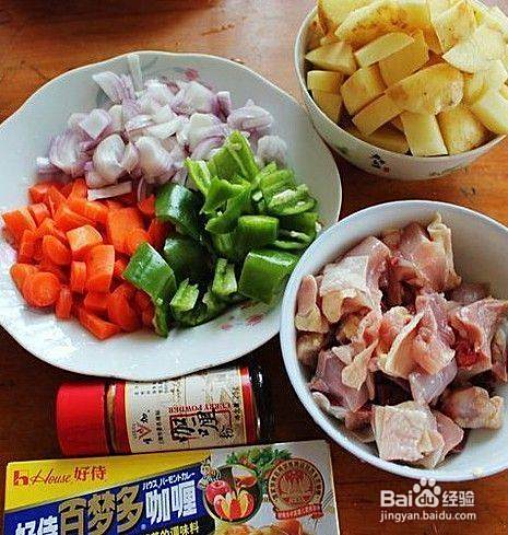 胡萝卜,土豆,洋葱,鸡肉,青椒切丁