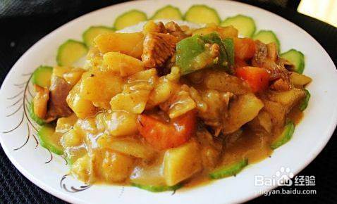 咖喱(也写作咖哩)是由多种香料调配而成的酱料,常见于印度菜、泰国菜和日本菜等,一般伴随肉类和饭一起吃。咖哩是一种多样变作及特殊地调过味的菜肴,最有名的是印度和泰国烹调法,然而咖哩已经在亚太地区成为主流的菜肴之一。现在只要在超市里买一盒咖喱块,自己在家也能做印度大餐!美味的咖喱饭!