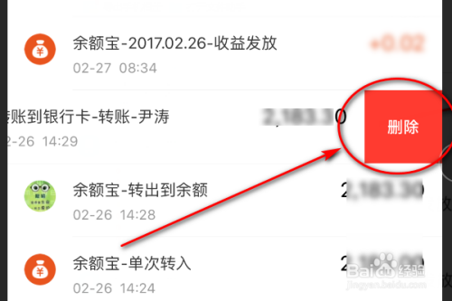 选择好账单后,向左边滑动该账单,让账单后面出现删除选项按钮,点击出现的删除按钮即可删除该历史账单。