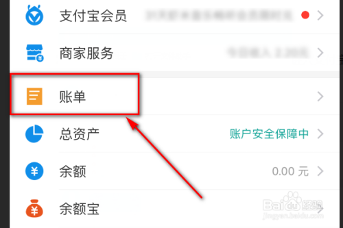 在支付宝我的界面选择账单功能选项,点击进入账单功能设置界面。